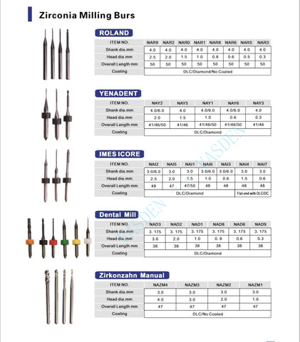 Zirconia Milling Burs DC