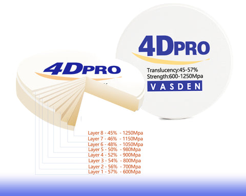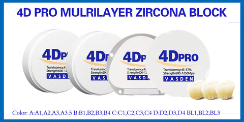 Vasden 4D Pro Multilayer Zirconia Block 98mm For CADCAM Milling Machines Dental Material