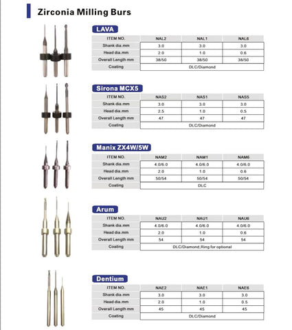 - Zirconia DLC Diamond coated: Cutting 200-250 crowns